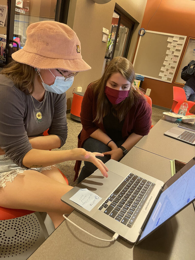 “We can all come at a problem from a different angle and work to make the best solution. It’s beneficial for all of us,” Monasa said, “The way I would approach a video project is different from the way Drew [Wiltberger] would because he has video background. I’ll ask him if I’m giving enough time for someone to do a task or what he would do in a specific situation.” While the work she’s doing in the classroom might not directly correlate with her work at the Corps, Monasa thinks her experience in project management is beneficial for her critical and creative thinking skills.