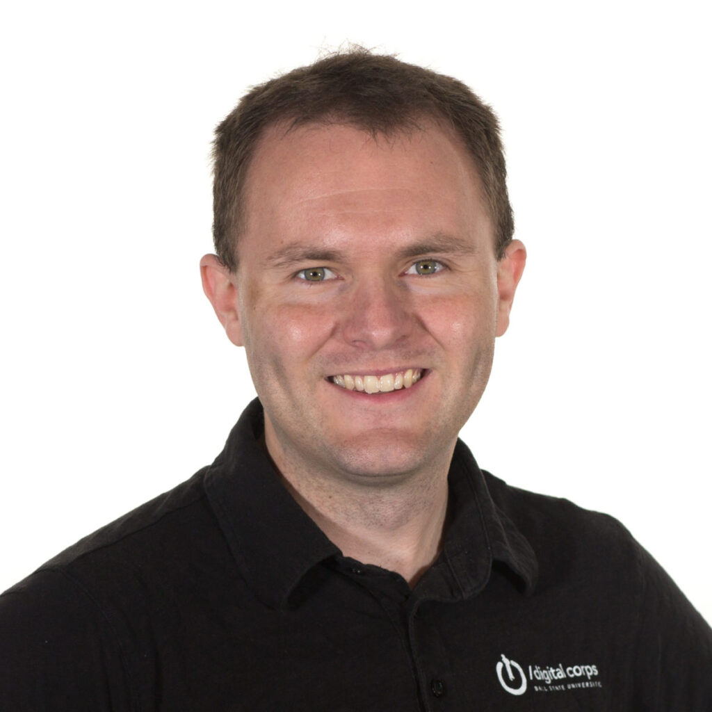 Before coming to the Digital Corps, Shaffer was a freelance illustrator. He did web design and web work for local businesses, but eventually got more into design and switched to illustration. Shaffer’s freelance background gave him a wider view of design as a whole and experience working in the private sector, which is different from a public entity like Ball State. His knowledge within the field helps him mentor our Designers and prepare them for their professional careers post-graduation.