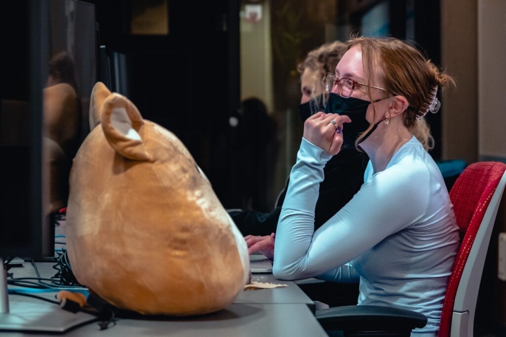 Design Specialist Rhiannon Morrison steers closer toward the animation side of the design spectrum although she works on a wide range of design projects at the Corps. Her love for drawing began when she was 10 or 11. She found photos of horses and wolves online and started drawing them. She also started drawing characters from books, including cats from the Warrior Cats series. Media continued to influence Morrison’s inspiration as she grew older. In middle and high school, she drew characters from TV shows and watched online tutorials.