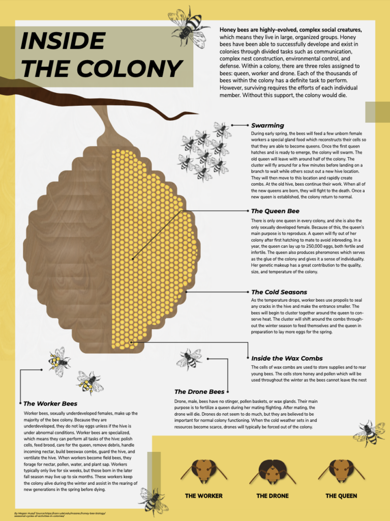 Huss is most interested in information design, such as branding and package designs, but she has a few other career options floating in her head. She has considered designing posters for set designs and designing information for museum exhibits, and she has also thought about pursuing graduate school.